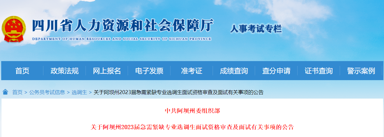 原文标题:关于阿坝州2023届急需紧缺专业选调生面试资格审查及面试有关事项的公告