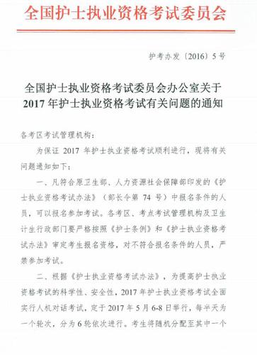 2017年全国护士考试时间及考试科目08-12