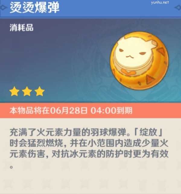 烫烫爆弹俗称开盾神器,用来丢给大冰史莱姆和冰盾丘丘人,这破盾速度压根都不需要相对应的元素了啊。