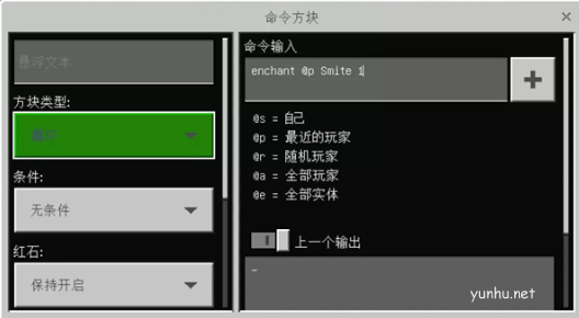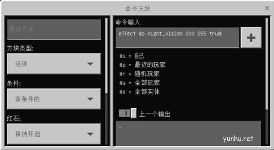 最左侧上方的命令方块设置如下,输入指令: