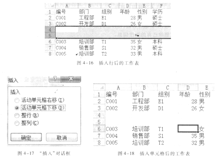 单击“开始”选项卡“单元格”命令组的“插入”命令,选择其下的“行”、“列”、“单元格”可进行行、列与单元格的插入,选择的行数或列数即是插入的行数或列数。