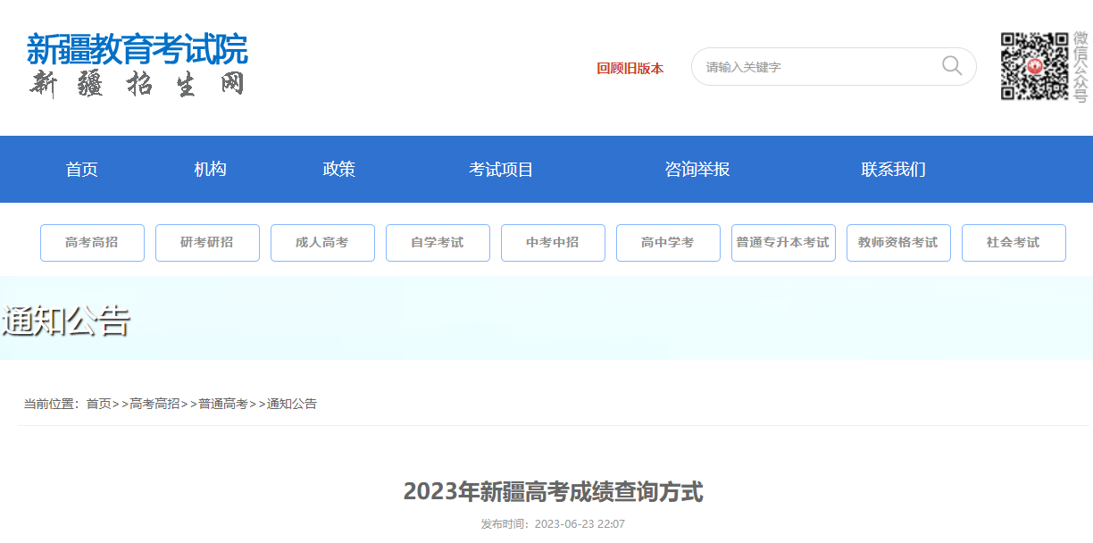 点击进入:2023年新疆高考成绩查询查分入口