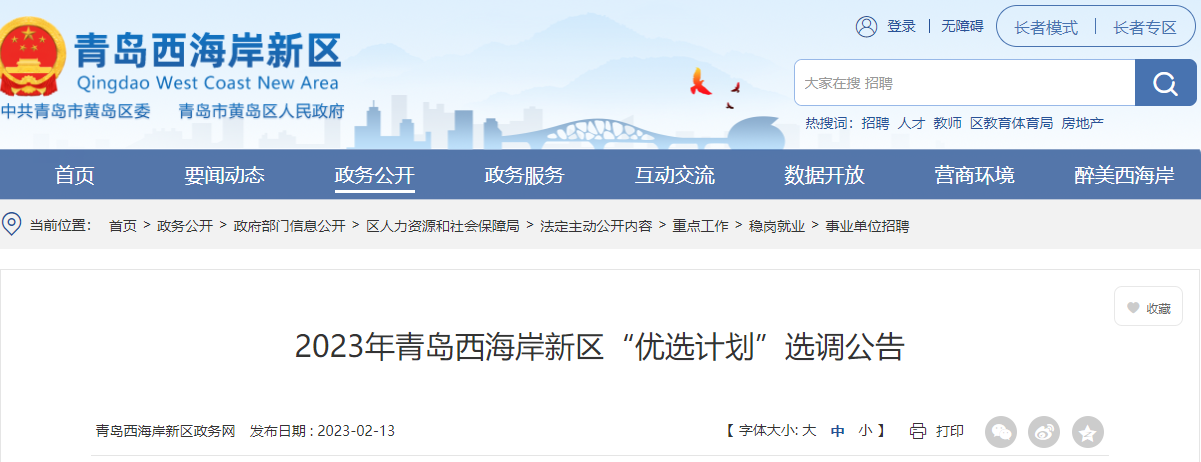 原文标题:2023年青岛西海岸新区“优选计划”选调公告