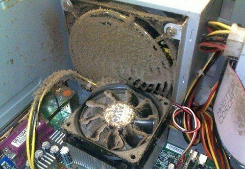 2、一般这个时候可以将主机拆开,然后用一把小刷子将风扇上的积灰全部清除,再看看cpu和显卡的风扇,如果灰尘也很多的话就一起将其清除了。