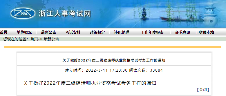 【#二级建造师# 导语】®文档大全网从浙江人事考试网发布的《2022年浙江二级建造师执业资格考试工作通知》中获悉,2022年浙江二级建造师考试时间定于6月11日-12日举行,预祝广大考生顺利通过考试!