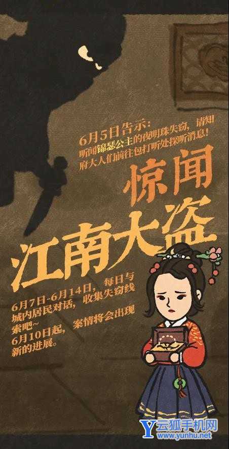 此外6月10日至6月12日及6月15日至6月18日,城内会有盗贼携带【假夜明珠】混淆视听、掩护同伙,还请知府大人一并收缴拷问!