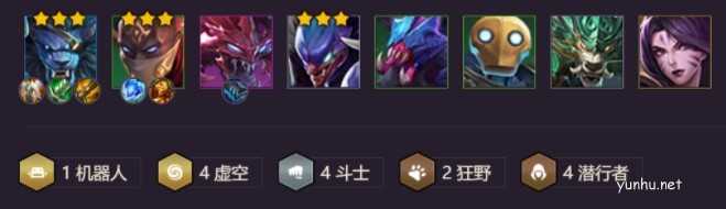 2、阵容分析:四虚空四斗士四潜行者能抗能打,前有斗士抗,后有潜行者收割,还有2狂野强化加成让友军更好的提升战斗状态。