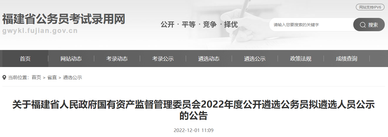2022年福建省人民政府国有资产监督管理委员会公开遴选公务员拟遴选人员公示公告12-02