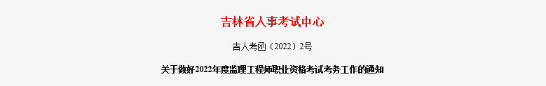 【#监理师考试# 导语】©文档大全网从吉林省人事考试网了解到,《2022年吉林监理工程师职业资格考试考务工作通知》现已发布,2022年吉林监理工程师报名时间:3月24日-30日,考试时间:5月14日-15日,©文档大全网小编现将报考信息发布如下: