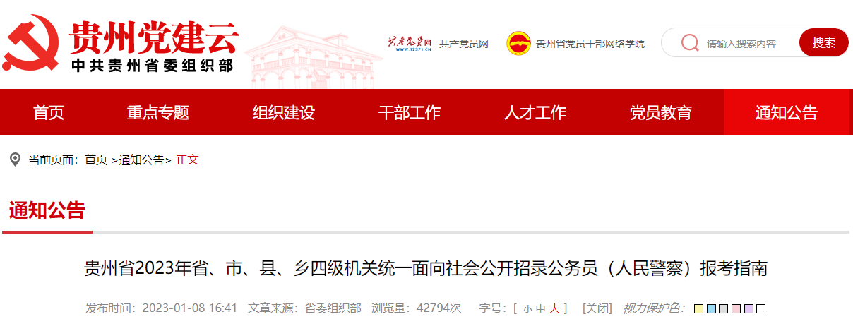 原文标题:贵州省2023年省、市、县、乡四级机关统一面向社会公开招录公务员(人民警察)报考指南