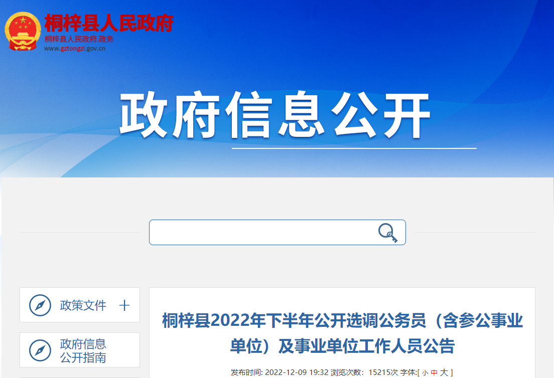 2022下半年贵州遵义桐梓县选调公务员(含参公事业单位)公告(报名时间12月15-16日)12-13