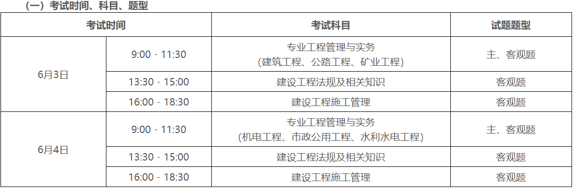 注:1.《专业工程管理与实务》科目分为建筑工程、公路工程、水利水电工程、矿业工程、市政公用工程、机电工程6个专业,报考人员可根据实际工作需要选报其一。