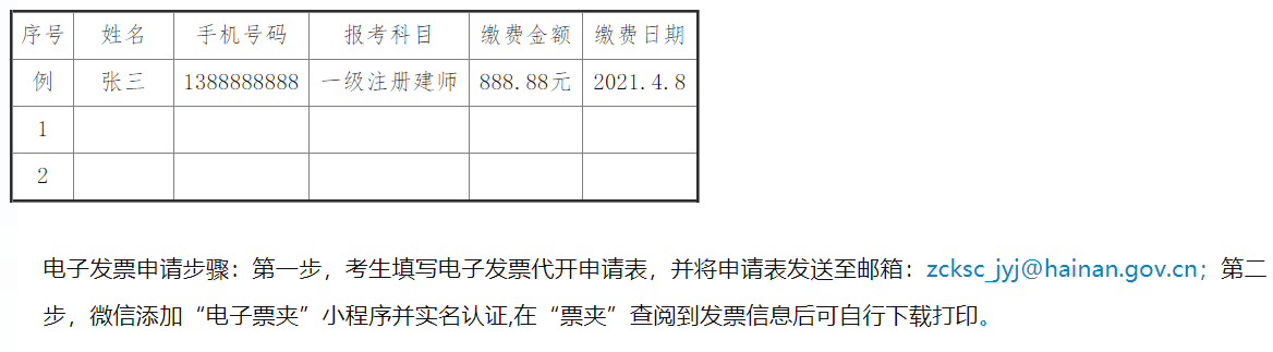 按照《海南省物价局 海南省财政厅关于核定专业技术人员资格考试收费标准的通知》(琼价费管〔2015〕265号)的有关规定执行,客观题每人每科55元,主观题每人每科60元。开具电子发票的考生,应在报名时间截止后14天内申请(详见附件4),逾期不再受理申请。