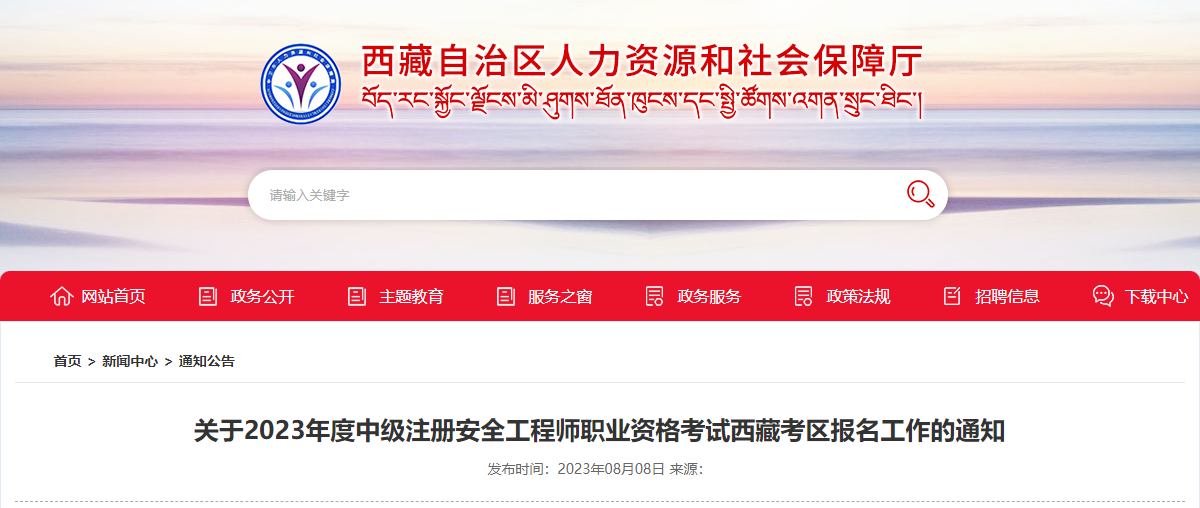 2023年西藏中级安全工程师考试时间:10月28日-29日08-24