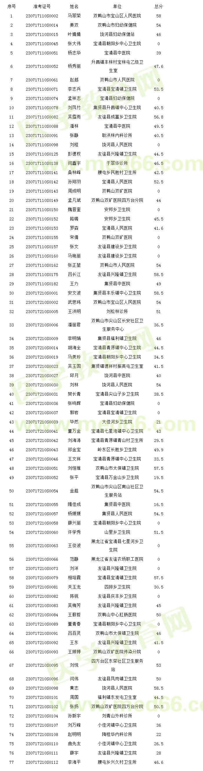 现将2017年医师资格实践技能考试黑龙江双鸭山考点不合格人员名单公布如下,综合笔试相关事宜另行通知。