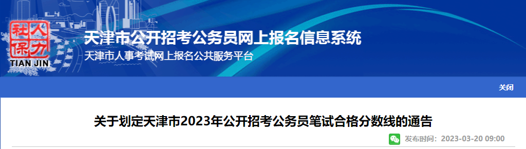 根据笔试情况,现将天津市2023年公开招考公务员笔试合格分数线通告如下: