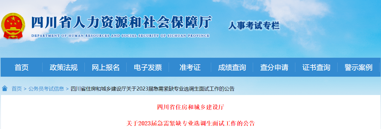原文标题:四川省住房和城乡建设厅关于2023届急需紧缺专业选调生面试工作的公告