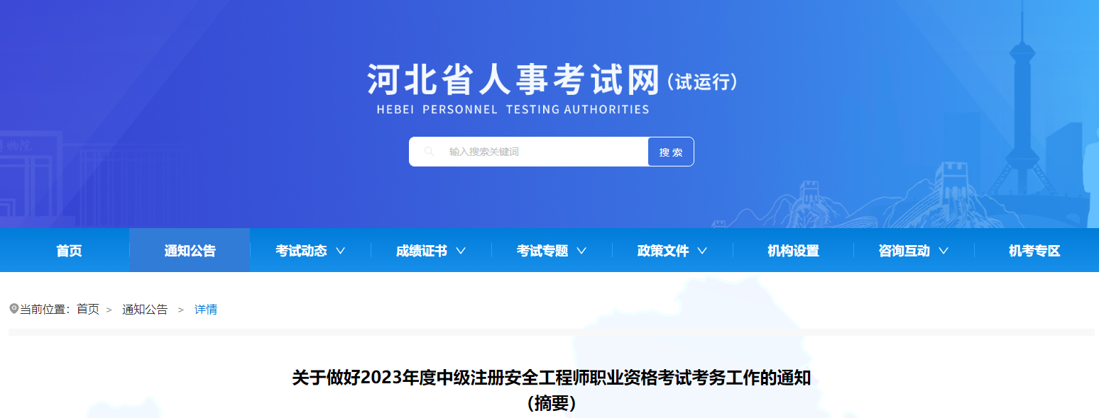2023年河北中级安全工程师考试时间:10月28日-29日08-19