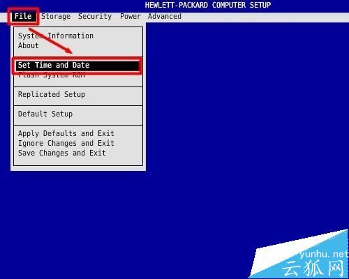 1、如果是HP BIOS的机器,开机时不断点击F10键进入BIOS,选择File下的Set Time and Date,点击回车