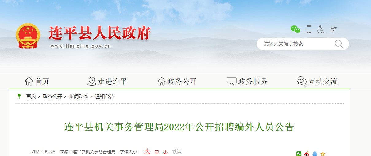 2022年广东省河源市连平县机关事务管理局编外人员公开招聘公告09-30