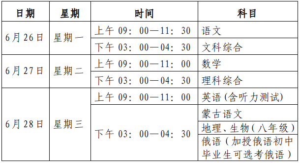 【#中考# 导语】©文档大全网根据包头教育在线的《包头市2023年初中学业水平考试暨八年级生物、地理结业考试与高中阶段学校招生工作方案》中得知,2023年内蒙古包头中考时间定于6月26日-28日举行,相关事宜如下: