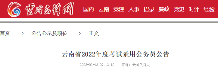 2022年云南公务员考试报名时间及报名入口【2月21日-25日】03-05