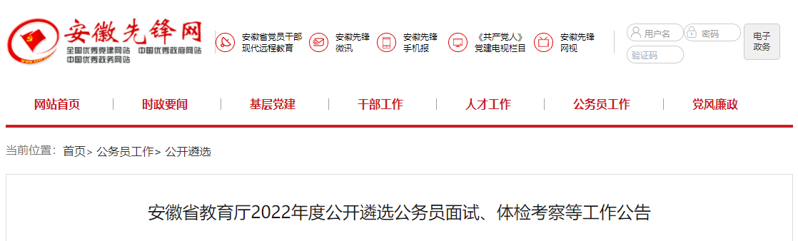 原文标题:安徽省教育厅2022年度公开遴选公务员面试、体检考察等工作公告