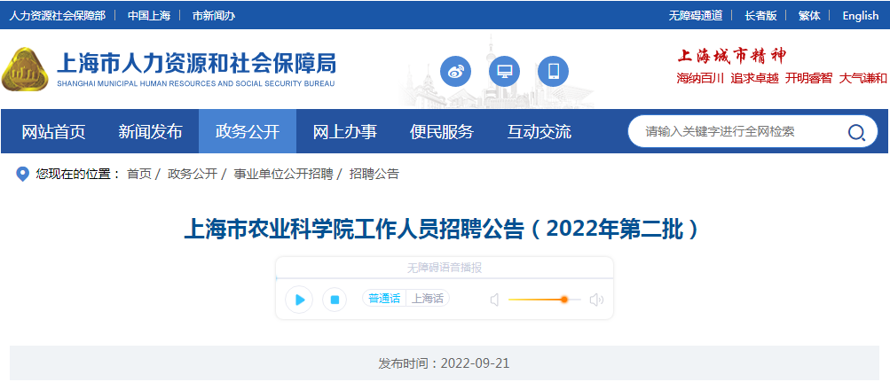 【#事业单位# 导语】上海市农业科学院工作人员招聘公告(2022年第二批)已发布。®文档大全网现将招聘公告原文发布如下: