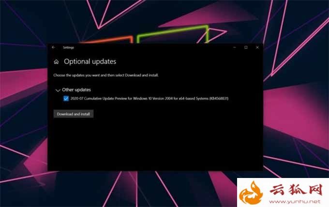 该可选更新面向 Windows 10 版本 2004 推送,你需要从更新和安全 >Windows 更新 >可选更新中手动安装。