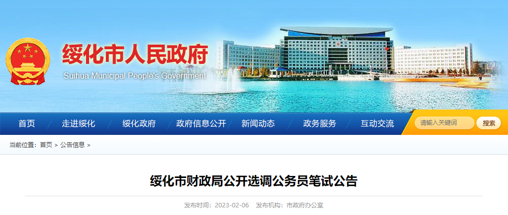 2022年黑龙江绥化市财政局选调公务员考试时间:2023年2月11日举行02-08