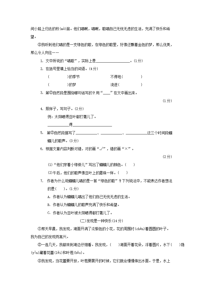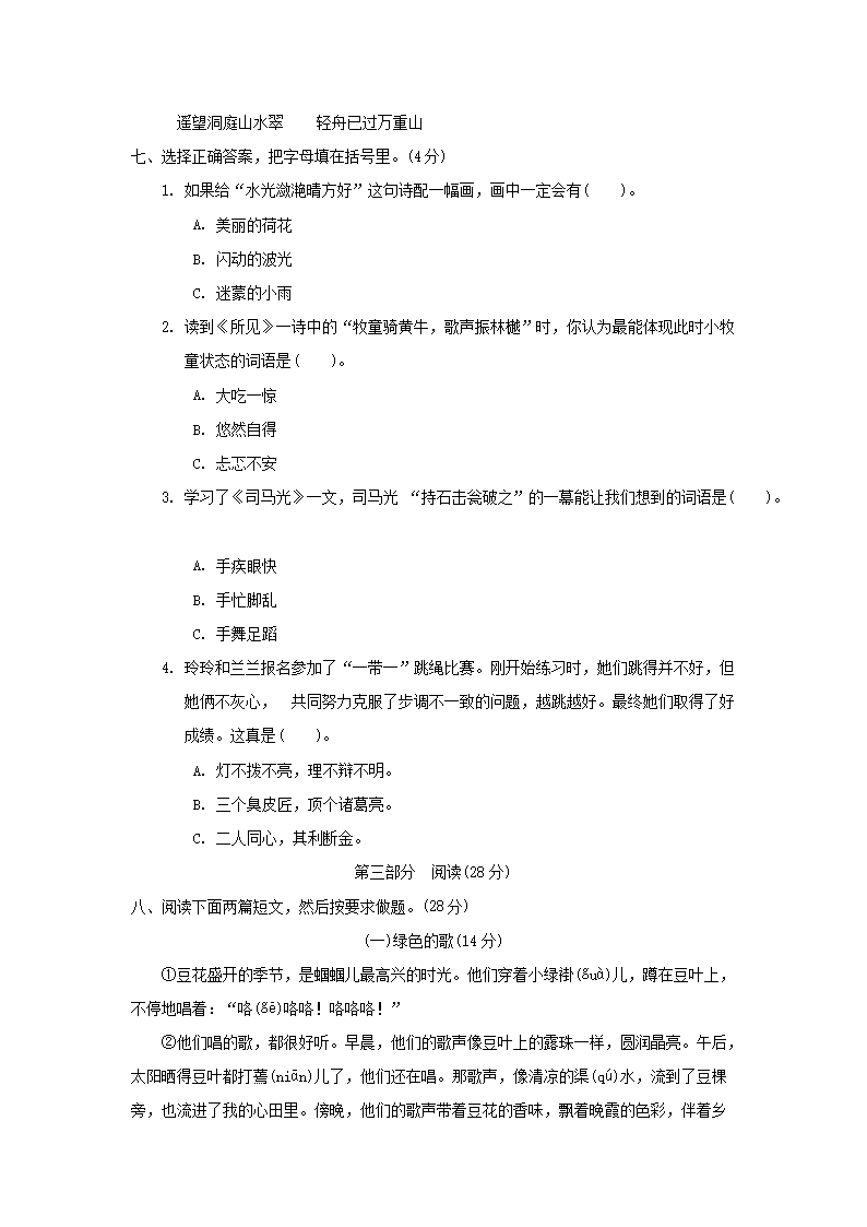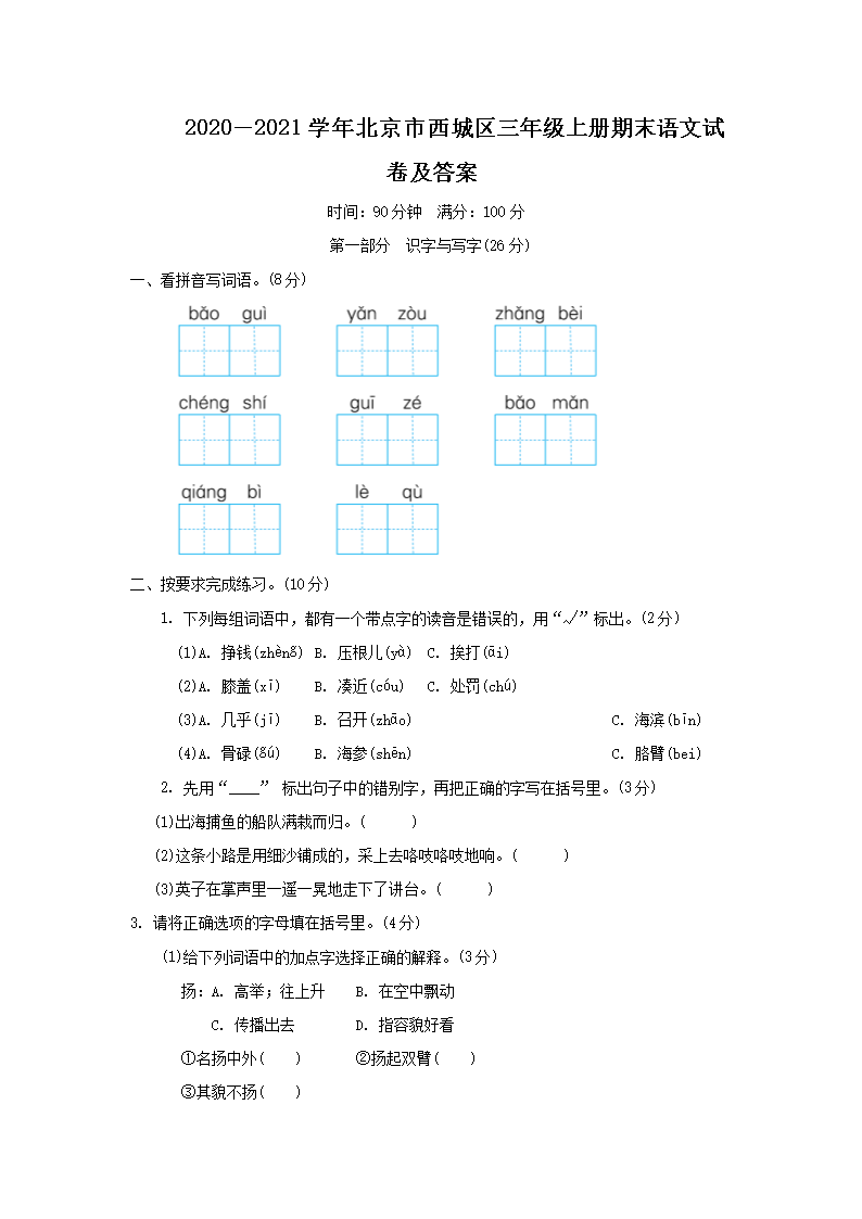 2020-2021学年北京市西城区三年级上册期末语文试卷及答案(Word版)06-15