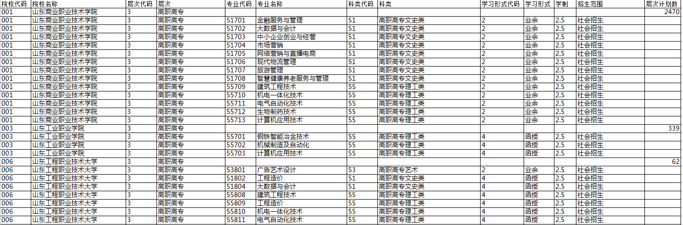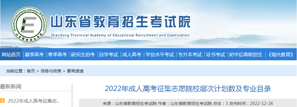 2022年山东省成人高考征集志愿院校层次计划数及专业目录(附表格链接)12-27