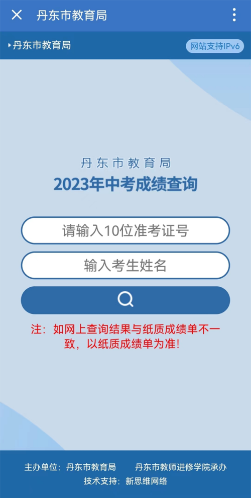 点击进入>>>2023年辽宁丹东中考成绩查询入口
