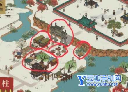 1、那么我们在布局整个江南百景图中自己这一块区域,就必须要了解如何将这里的热度提升起来。下面我们如果打算让自己所建造的区域中街上更加热闹一些,其实最好的办法就是多打造一些娱乐性的建筑。