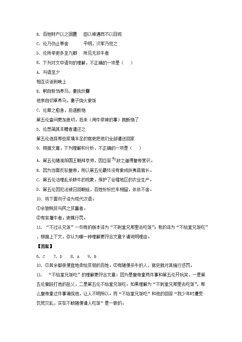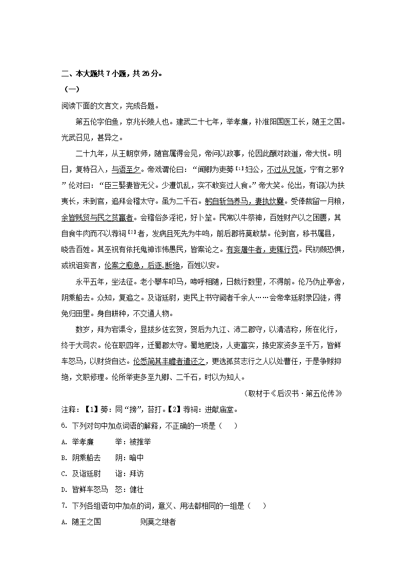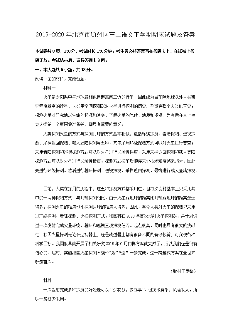 2019-2020年北京市通州区高二语文下学期期末试题及答案(Word版)09-29