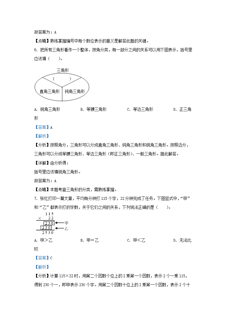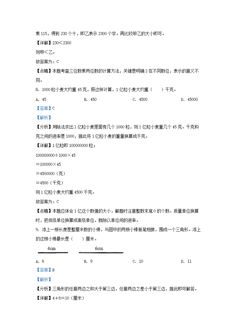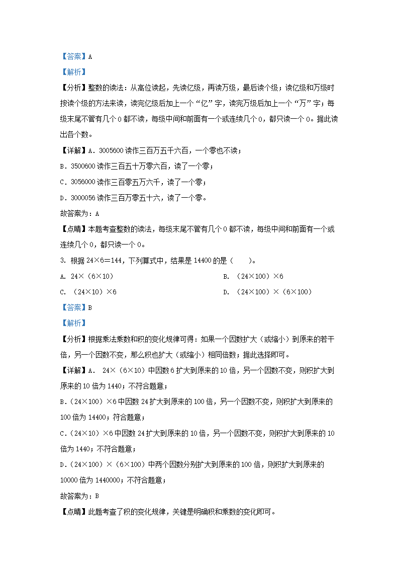 2021-2022学年江苏省盐城市阜宁县四年级下学期期末数学真题及答案(Word版)07-20