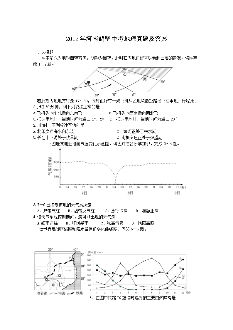 2012年河南鹤壁中考地理真题及答案(Word版)06-07