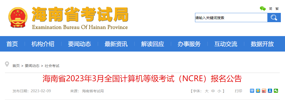 原文标题:海南省2023年3月全国计算机等级考试(NCRE)报名公告