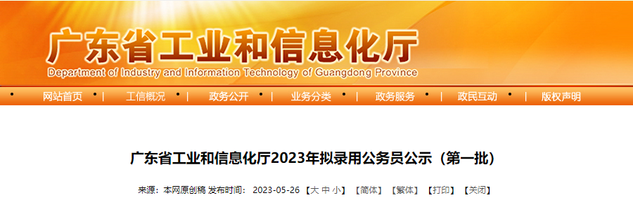 2023年第一批广东省工业和信息化厅公务员拟录用公示时间:5月27日-6月2日05-30
