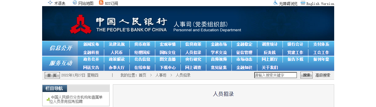 1.中国人民银行社会招聘报名入口