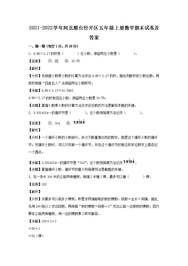 2021-2022学年河北邢台经开区五年级上册数学期末试卷及答案(Word版)09-01