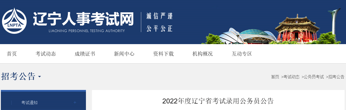 辽宁公务员考试报名网站:辽宁人事考试网(www.lnrsks.com)