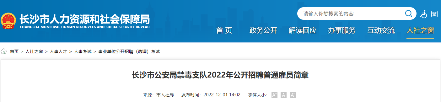 2022年湖南长沙市公安局禁毒支队公开招聘普通雇员公告12-02