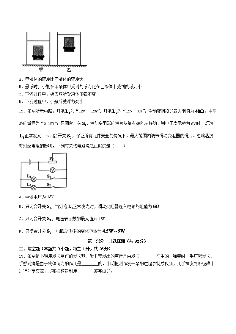 【文档预览】 文档大全网整理发布2023年辽宁本溪中考物理真题及答案(Word版),前五页预览如下: