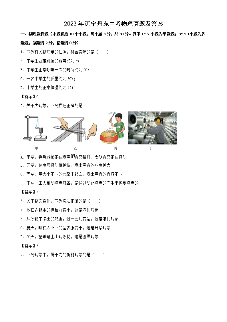 2023年辽宁丹东中考物理真题及答案(Word版)07-20