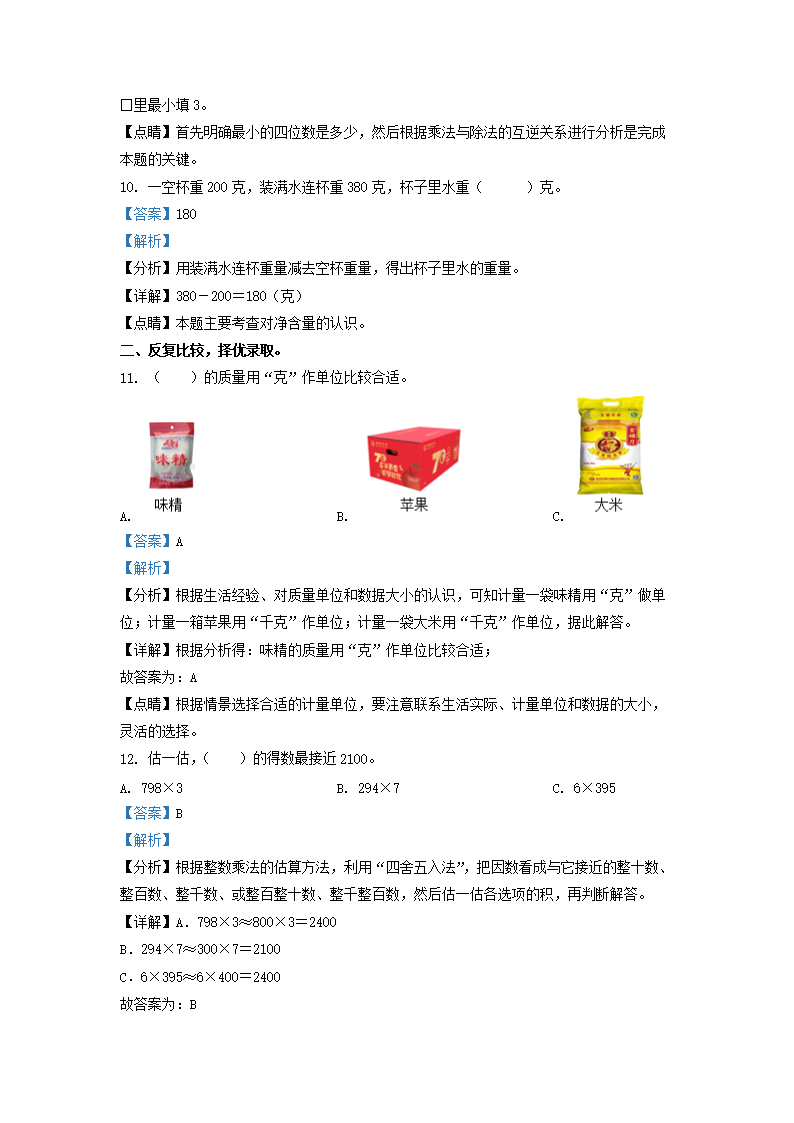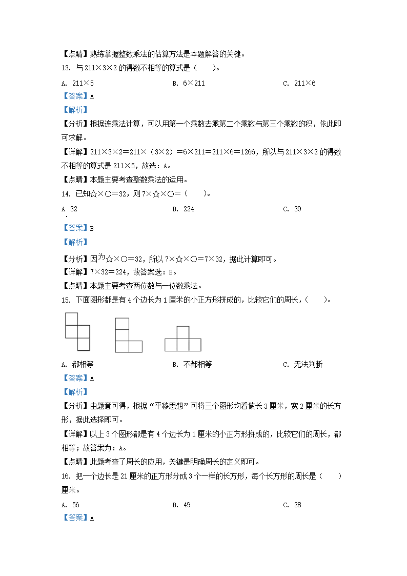 2021-2022学年江苏盐城苏教版三年级上册期中考试数学试卷及答案(Word版)07-19