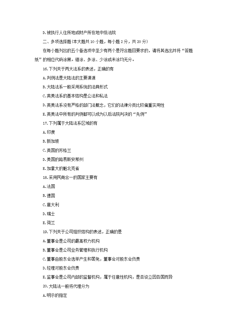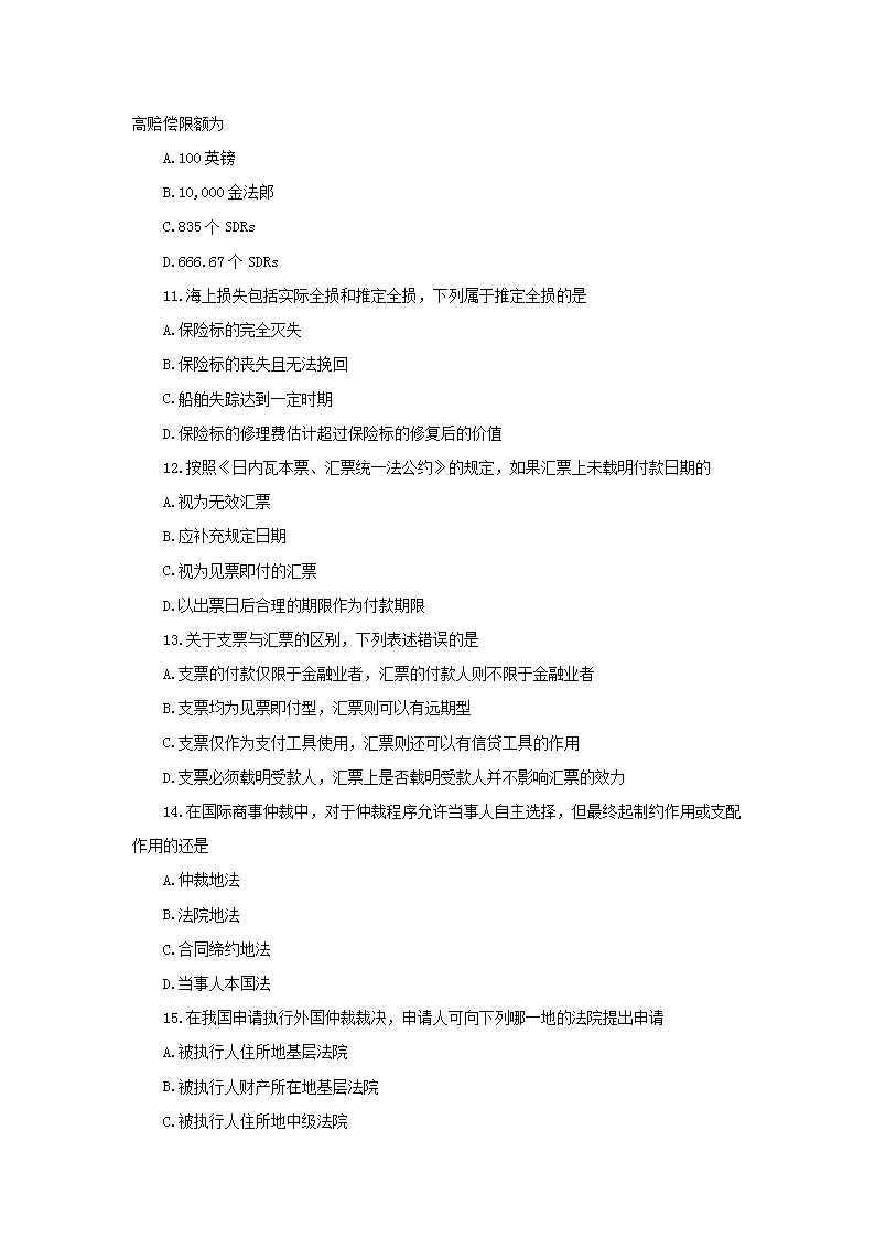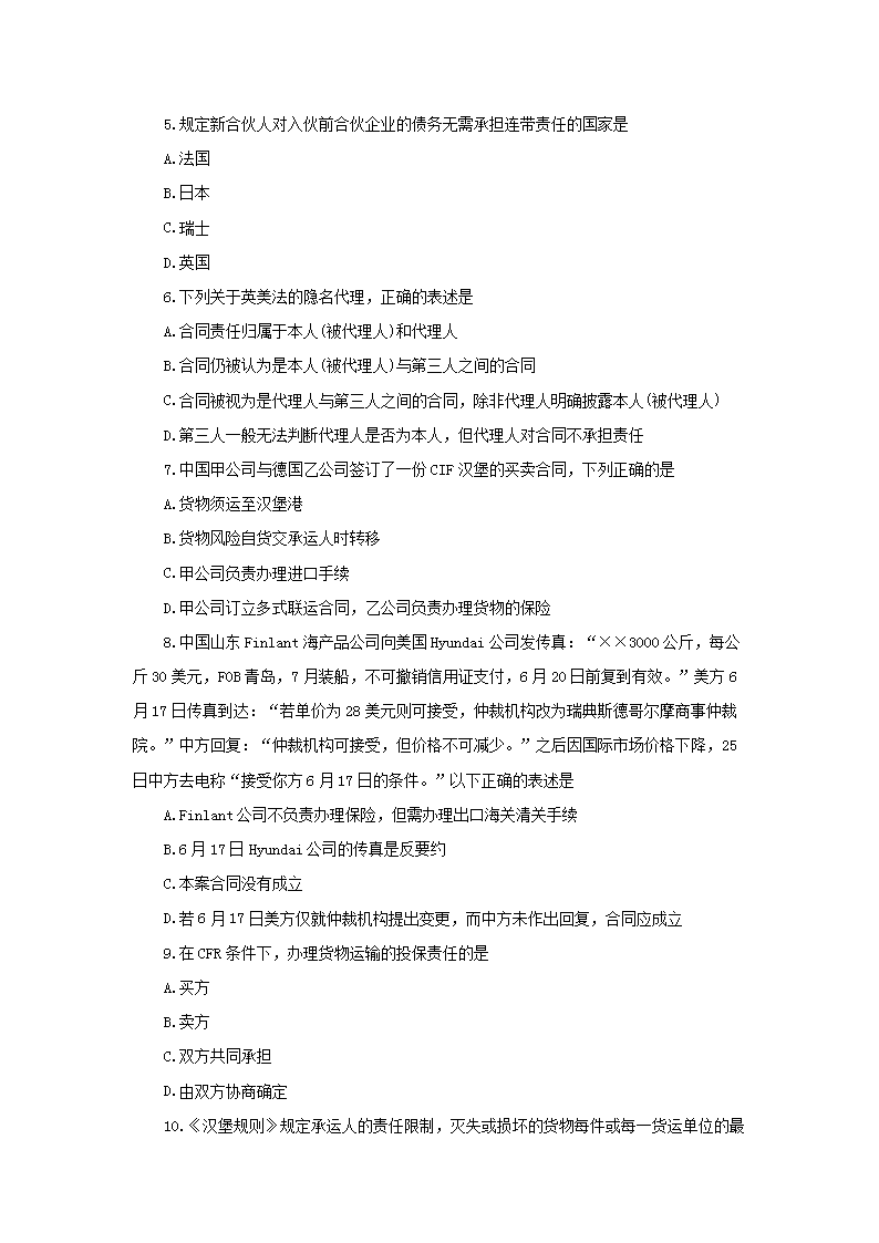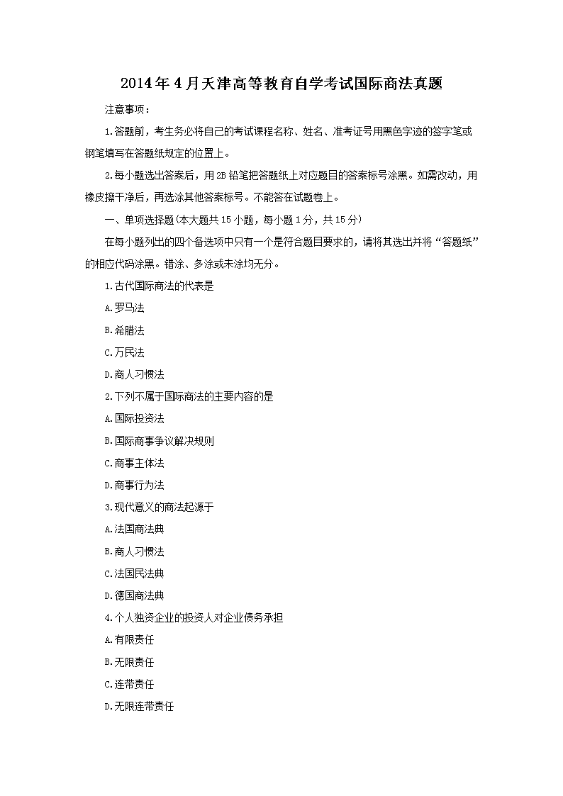 2014年4月天津高等教育自学考试国际商法真题(Word版)06-01