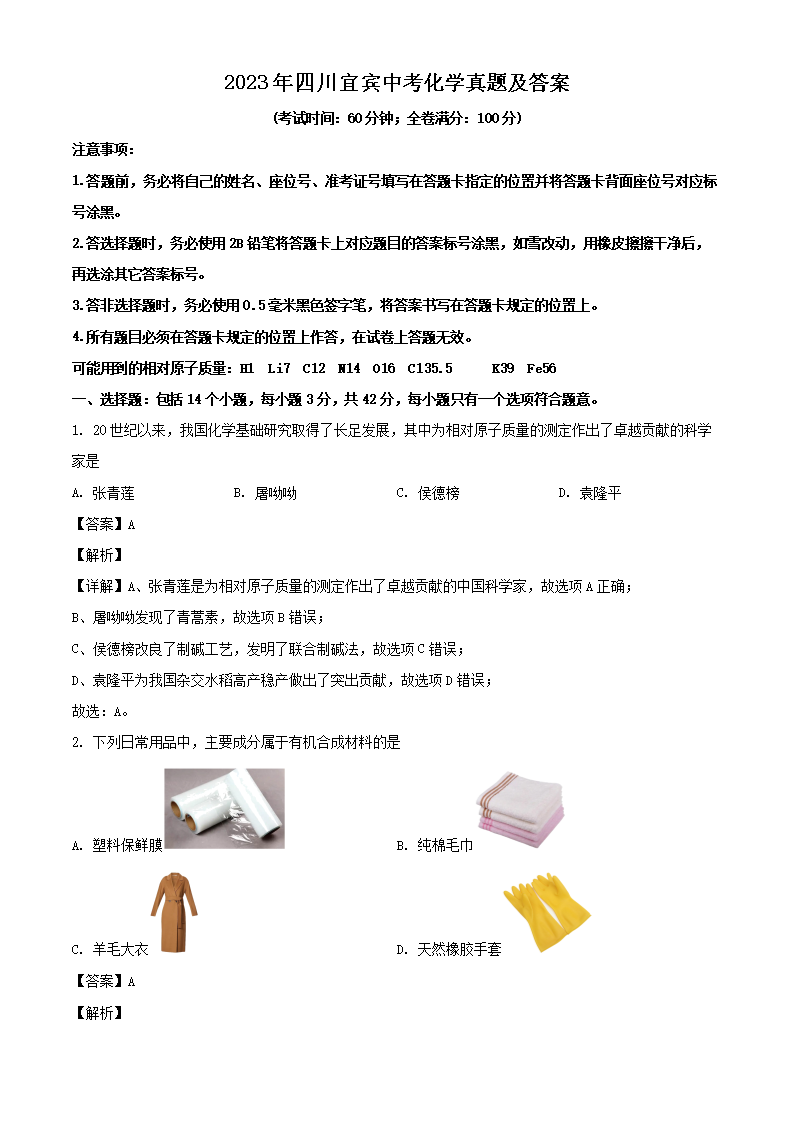 【文档预览】 文档大全网整理发布2023年四川宜宾中考化学真题及答案(Word版),前五页预览如下:
