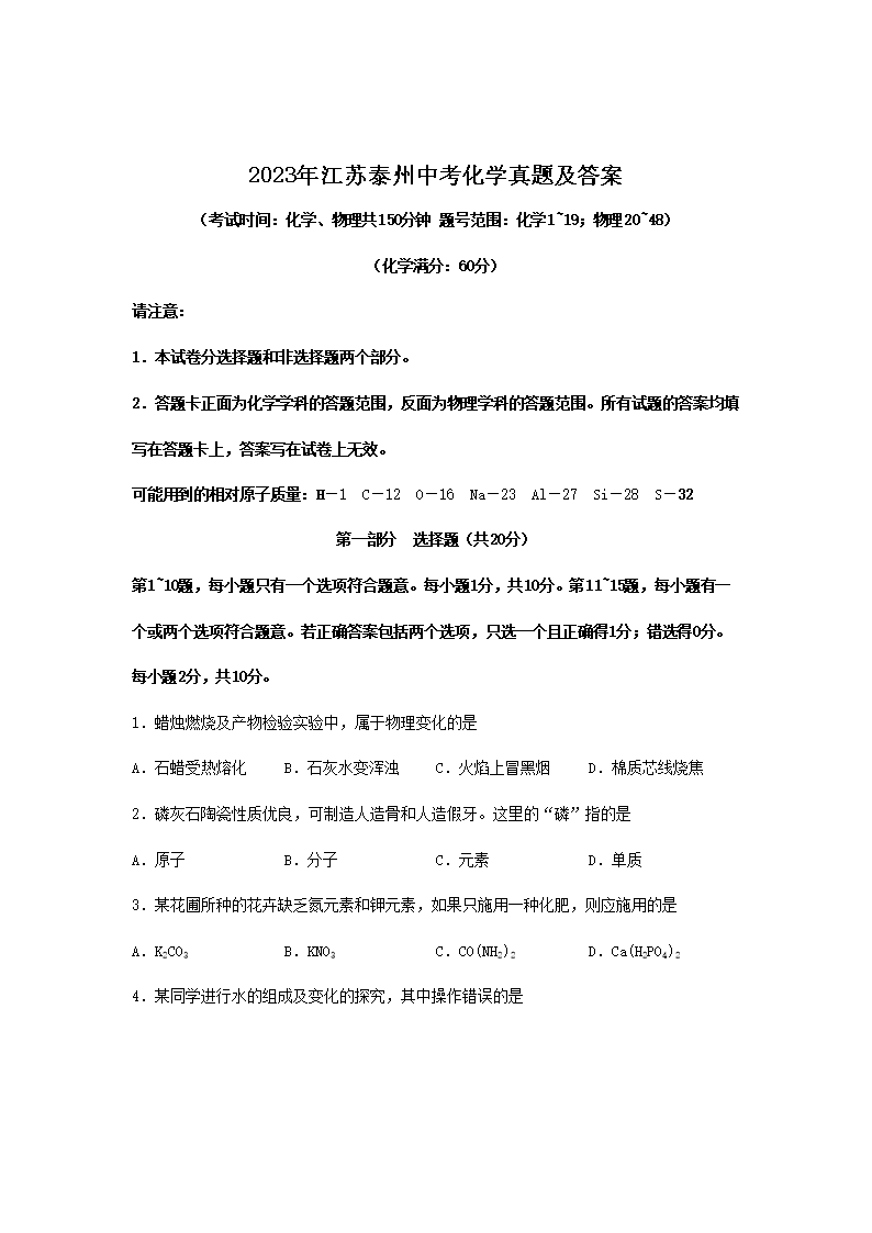 2023年江苏泰州中考历史真题及答案(Word版)10-20