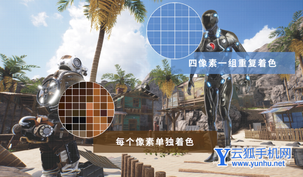 可变分辨率渲染技术允许着色器程序以2个或4个像素为一组进行着色,并将着色结果复用于周围像素。通过可变分辨率渲染技术,游戏的整体着色总像素数能够减少40%,从而大幅降低GPU的工作负载。